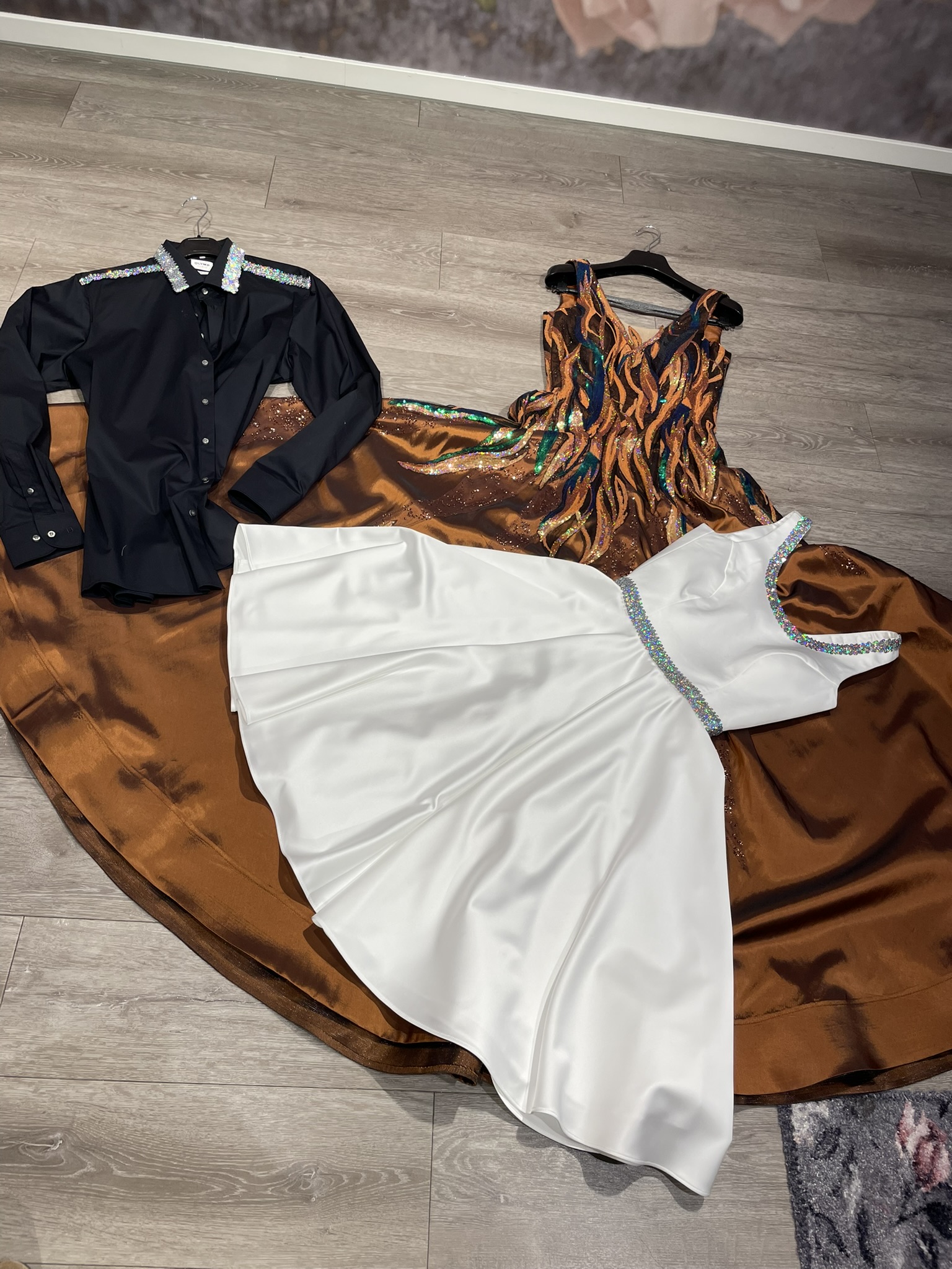 Kreativität und Verwandlungskunst gehören zu Showtanzkleidern. Die Herausforderung liegt zum Teil darin, dass innerhalb eines Tanzes, ohne Umziehen der Tänzerinnen und Tänzer, unterschiedliche Outfits zu sehen sein müssen.